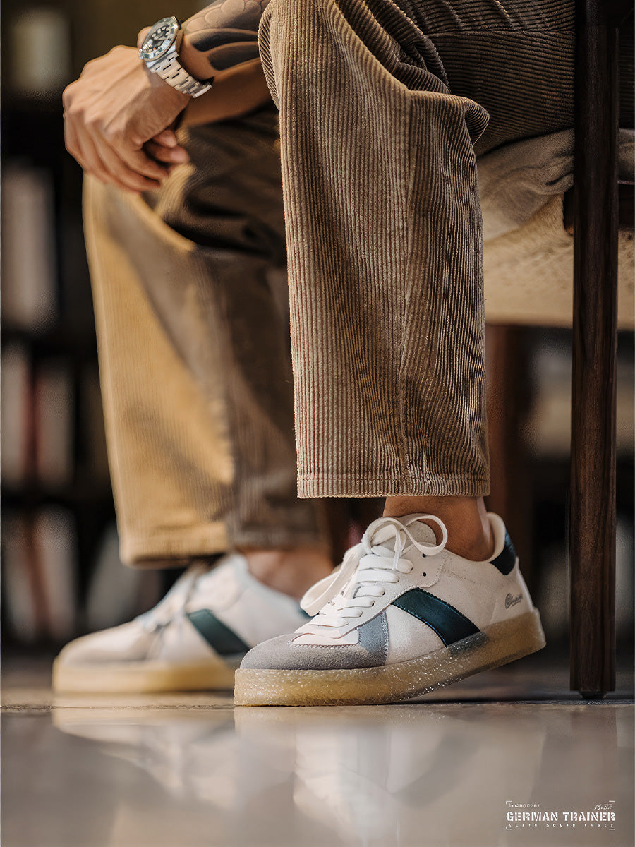 Inspired by the timeless appeal of German Army Trainer Shoes, this special edition is designed specifically for skateboarding enthusiasts. The classic silhouette has been reimagined as skateboarding shoes, and the addition of earthy green accents adds a touch of freshness to the overall retro style.